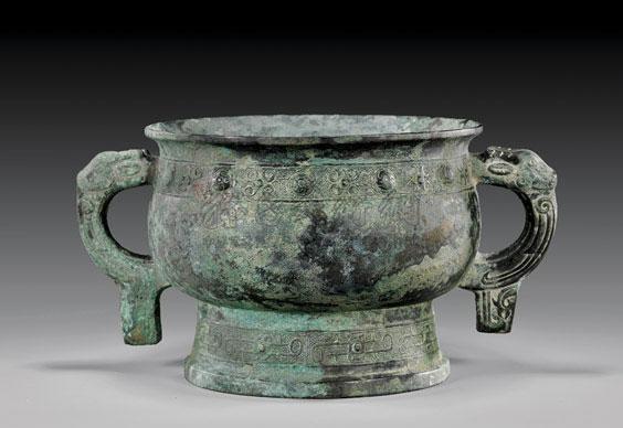 青铜器中现在已知的器类有很多种,比如有酒器、食器、水器、乐器、兵器、货币、玺印,等等,单在酒器类中又有爵。角、觯、斝、尊、壶、卣、方彝、觥、罍、盉、勺、禁等二十多个器种。中国的青铜器时代包括了夏、商、西周、春秋及战国早期,延续时间约有一千六百余年,直到东汉末年,陶瓷器得到较大发展青铜器才从生活中开始退出。众所周知,青铜器属珍贵文物,青铜器流通有着严格的管制,但近几年拍卖法日趋完善,1949年以前出土,流传有序,并有明确著录可以佐证的青铜器和从海外回流的青铜器只要通过合理正规的交易平台在市场上还是可以合法流通。