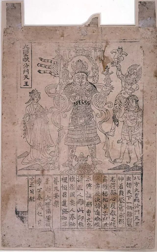 另外,印度佛教中的“法舍利”最早是将泥塑佛像等放置塔中,作为供养。与此同时,唐义净《南海寄归内法传》卷四记载,义净在印度看到,不仅有“拓模泥像”,还有“或印绢纸”的印钤佛像作为法舍利放置塔中。据郭鲁柏《西域考古举要》记载,印度流行的佛像印章,“模型做自中国”。而中国近现代著名学者王国维在五代雕印的佛画《大圣毗沙门天王像》题记中说:“古人供养佛菩萨像做功德,于造像、画像外,兼有制版,盖自唐时已然。”