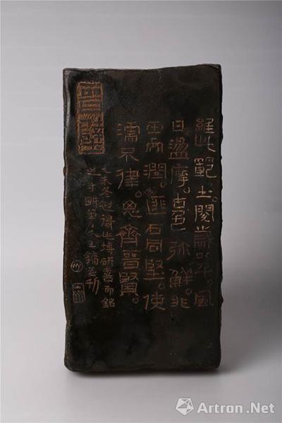 晋砖改砚。上侧有永和十二年十月八日纪年砖铭。另侧有八琼室陆氏第九砚砚铭。上雕云龙纹。