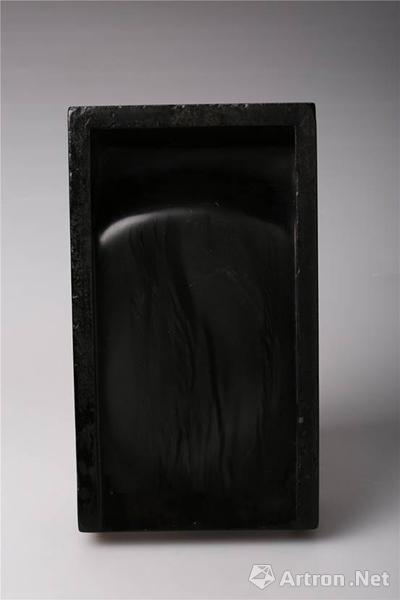 罗纹山旧坑歙石。上略窄下宽。石色青碧澄瑩。石理缜密细润。现角浪水波纹。砚堂开阔。砚池深峻。砚底有二高足。其式尚遗唐凤字砚之形。